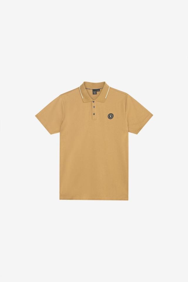 Ce polo Aron beige moutarde au toucher doux et agréable allie élégance et tendance avec ses détails comme son col avec liseré blanc et son ouverture avec des boutons personnalisés « Le Temps des Cerises ». Pour le détail, un écusson personnalisé « Le Temps des Cerises » sur la poitrine et un mini liseré drapeau bleu, blanc, rouge au dos au niveau du col. – Col polo, chemise – Coupe : droite – Type de fermeture : boutonnée – Manches courtes – Tissu : agréable – Motif : uni